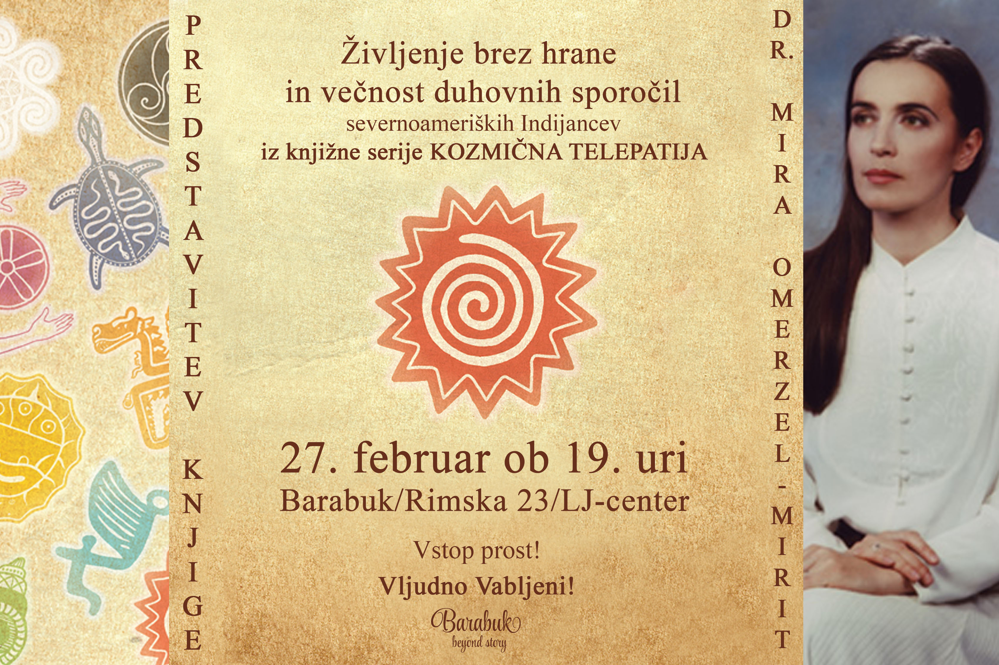 V okviru dogodka bo možno kupiti tudi prvič predstavljeno knjigo dr. Mire Omerzel - Mirit "Življenje brez hrane in večnost duhovnih sporočil severnoameriških Indijancev" iz njene knjižne serije devetih knjig "KOZMIČNA TELEPATIJA ali modrost onkraj misli in slišnega zvoka preteklosti za prihodnost".